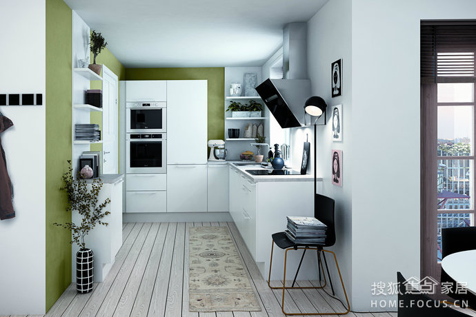 PS:U字形厨房的工作区共有两处转角,因此,对空间的要求较大,当厨房的面积不是很大时,水槽最好放在U字形的底部,并将配膳区和烹饪区分设在两旁,使水槽、冰箱和炊具连续连成一个正三角。