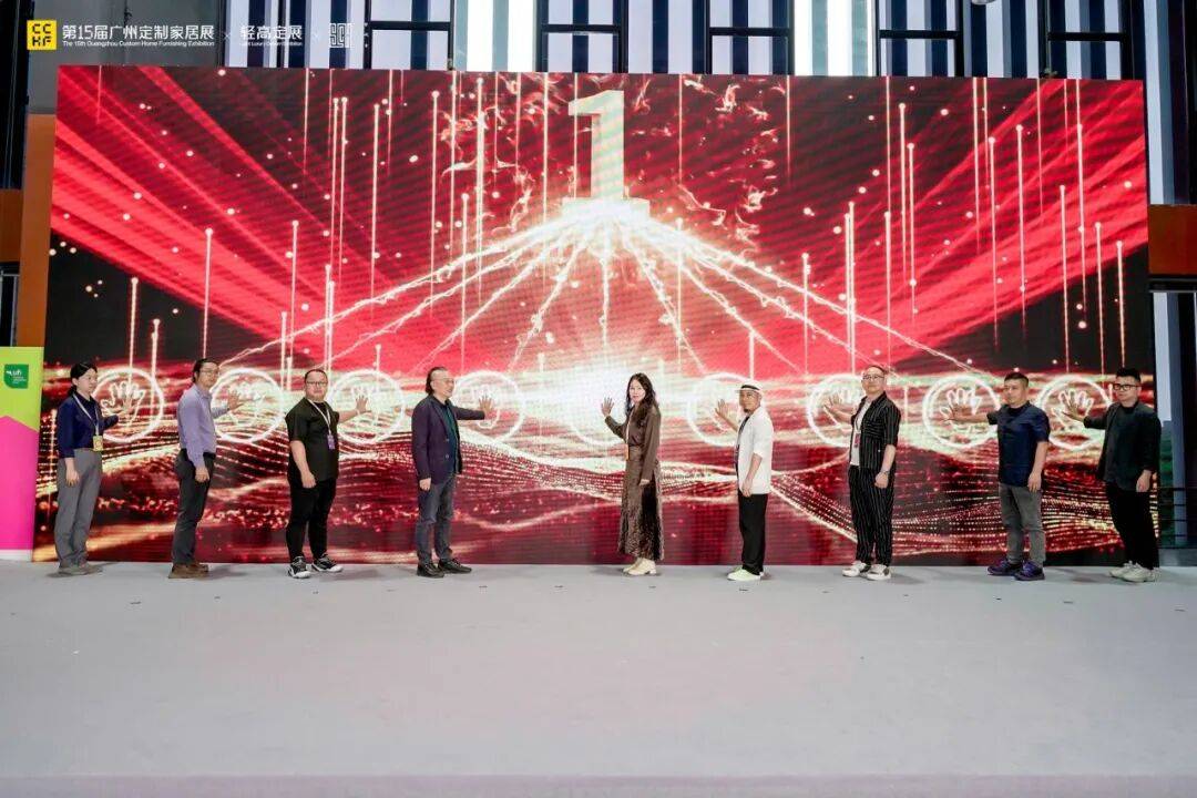 广州定制家居展暨轻高定展副总经理王晓文、首席学术顾问 李泰山、学术委员会副主席 富察振辉、蒋立、陈兆勤、刘楚荣、郭彦毅,俱乐部秘书长 宋唐、副秘书长 季晴等9位嘉宾共同登台,在现场所有嘉宾的共同倒数中,正式启动轻高定设计师俱乐部(大湾区)。