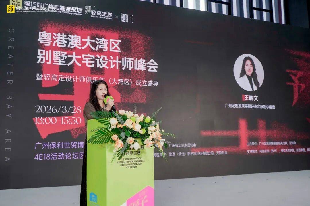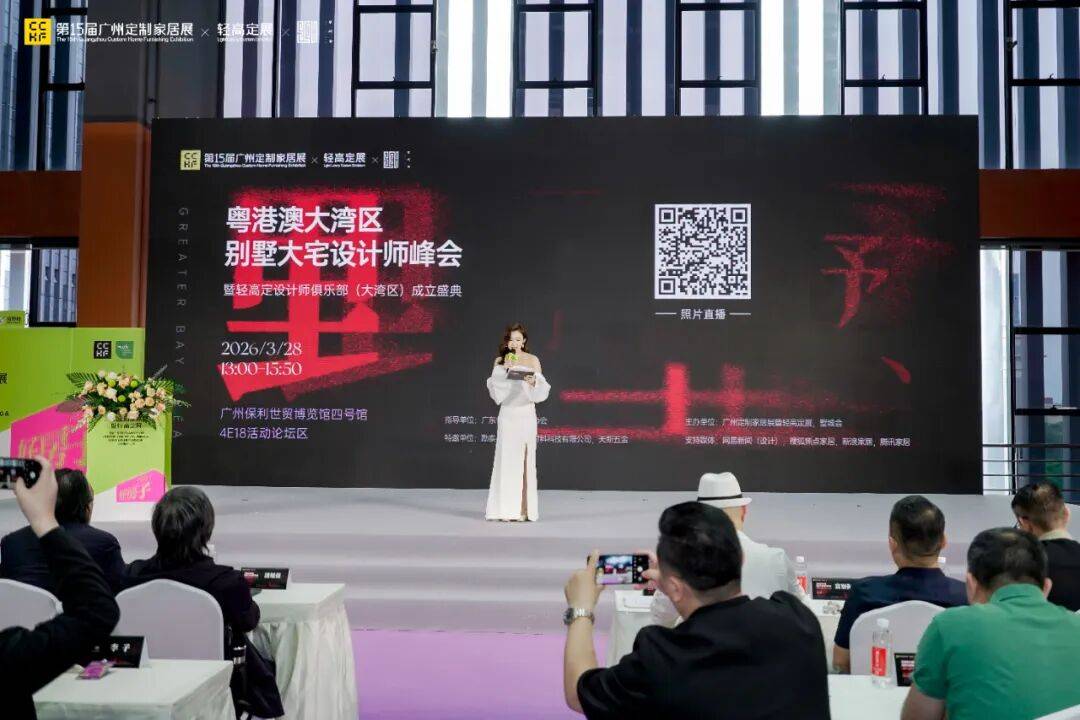 当轻高定成为高端人居设计的主流风向,当粤港澳大湾区成为设计创新与产业融合的核心沃土,一场属于墅居大宅设计领域的行业盛会在羊城广州璀璨启幕。2026年3月28日,依托第15届广州定制家居展暨轻高定展的行业盛势,2026粤港澳大湾区别墅大宅设计师峰会暨轻高定设计师俱乐部(大湾区)成立盛典在广州保利世贸博览馆四号馆活动论坛区圆满举办。